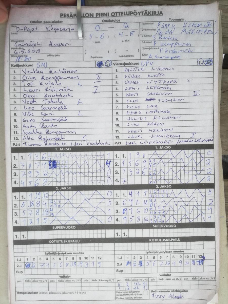 | 6.5.2019 18:30 | SMJ Punainen | UPV Dp | 0-2 (5-6, 4-15) | näytä | |