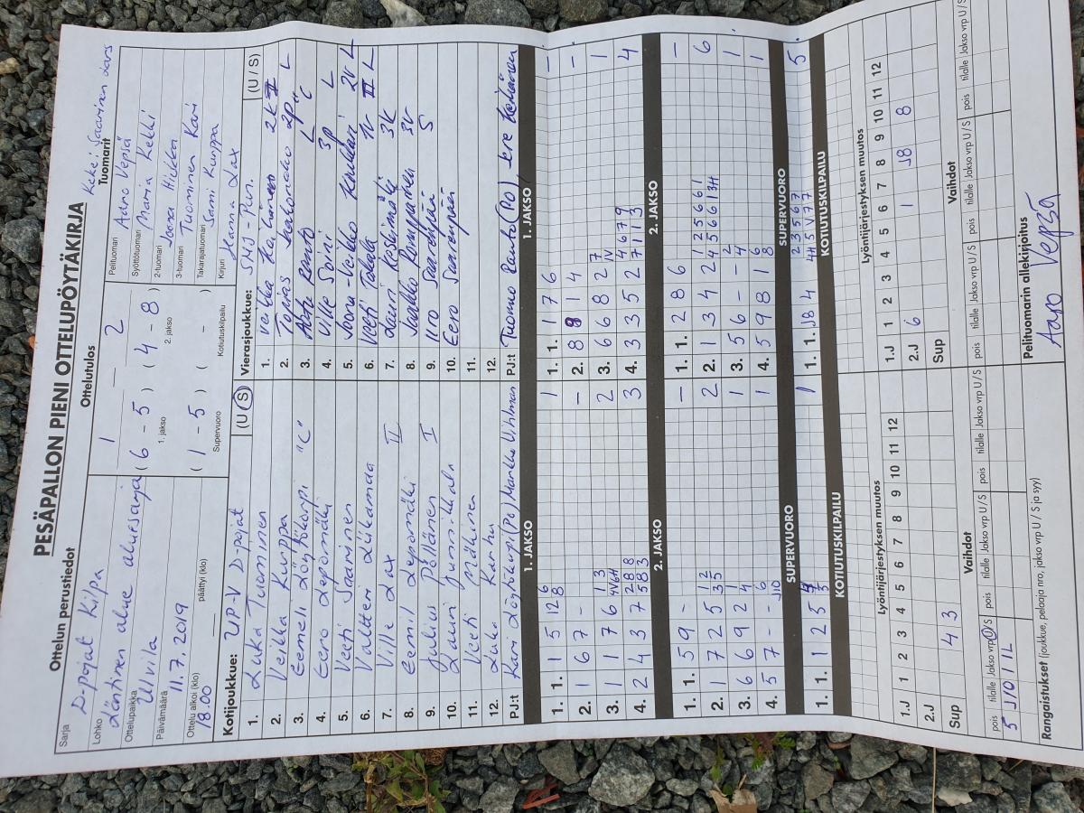 | 11.7.2019 18:00 | UPV Dp | SMJ Punainen | 1-2 (6-5, 4-8, 1-5) | näytä | |