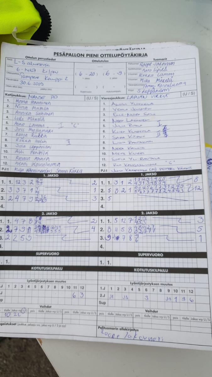 | 30.7.2019 18:00 | Manse PP E 07T | Pesäkarhut E07 | 0-2 (4-9, 1-13) | näytä | |