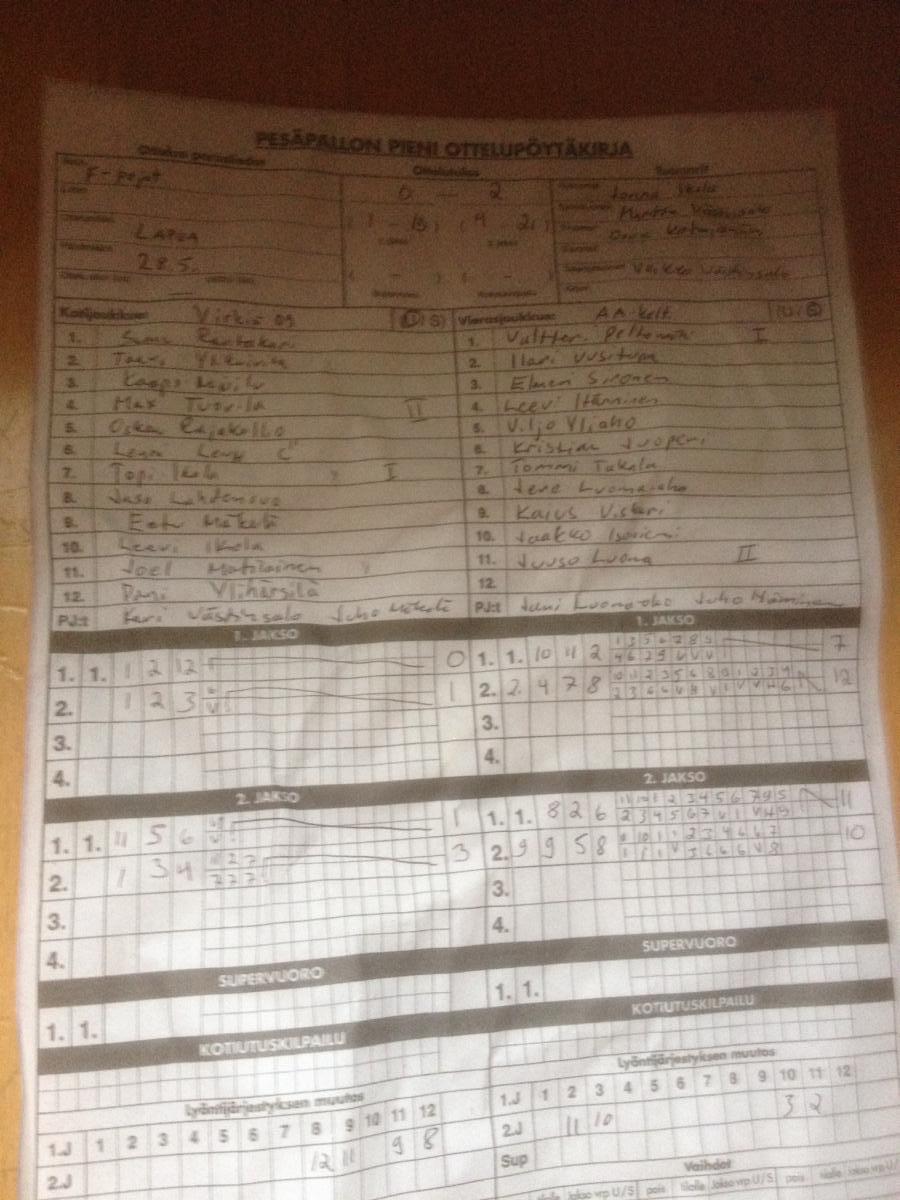 | 5.6.2019 18:00 | AA sininen | Virkiä 09 | 0-2 (5-14, 9-11) | näytä | |