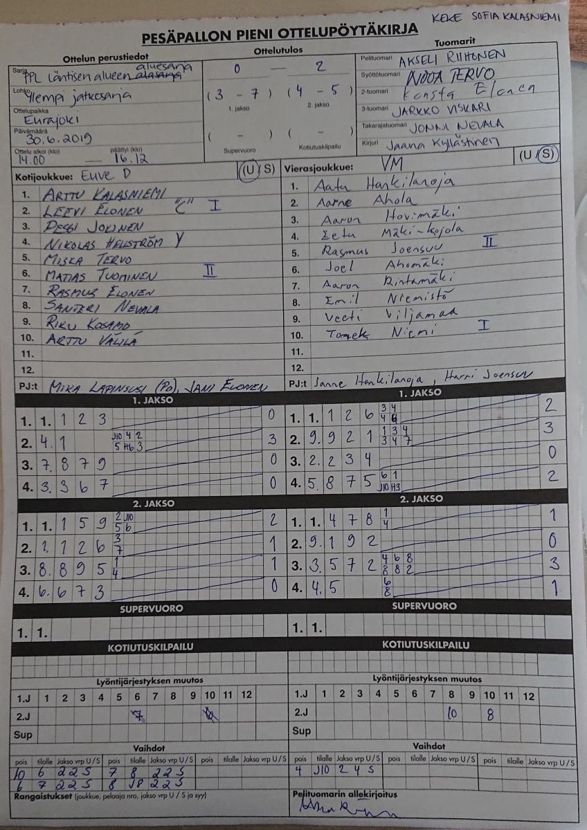 | 28.8.2019 18:00 | EuVe D | KaMa 06-07 | 1-2 (12-1, 1-5, 0-3) | näytä | |