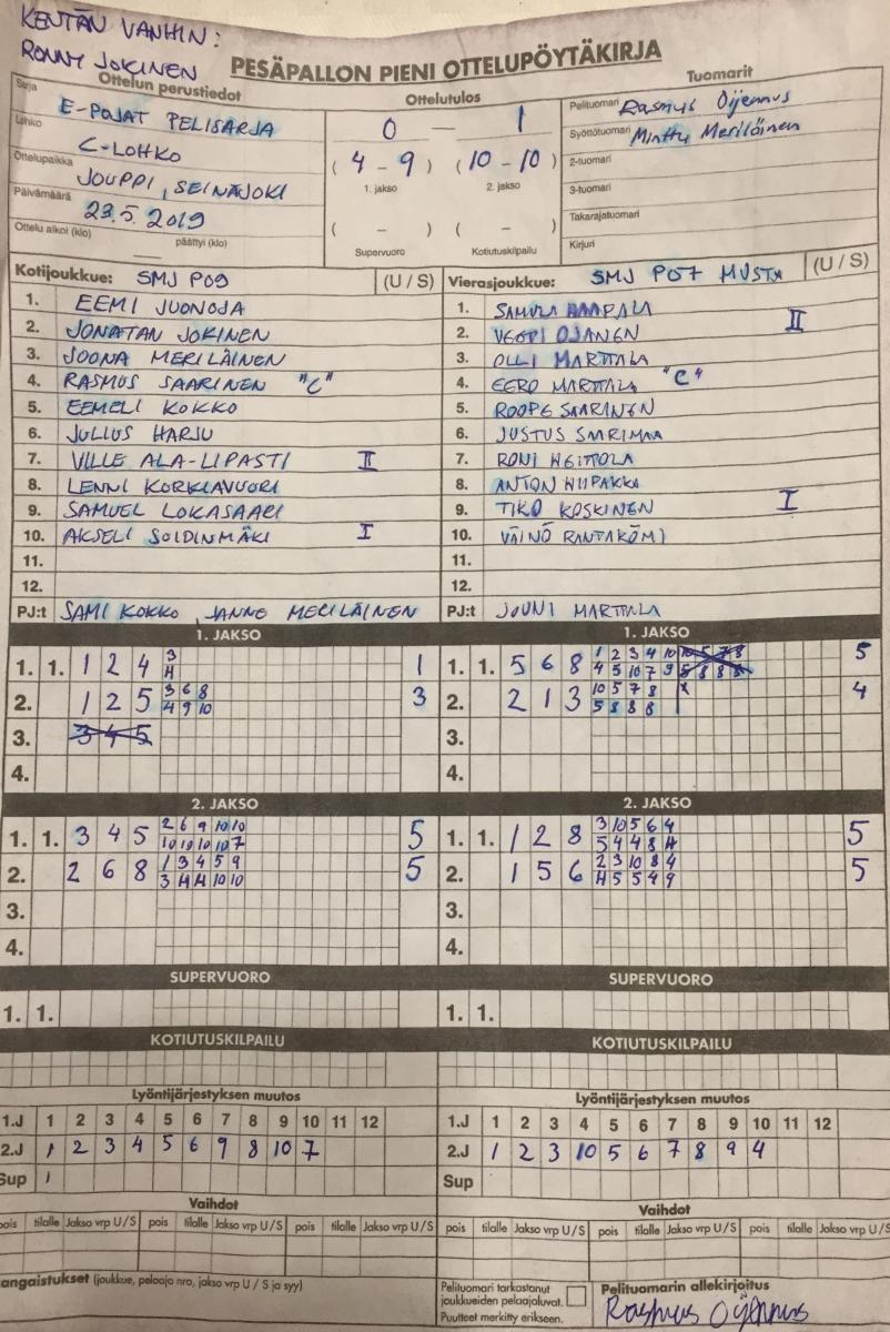 | 23.5.2019 18:00 | SMJ P09 | SMJ P07 Musta | 0-1 (4-9, 10-10) | näytä | |