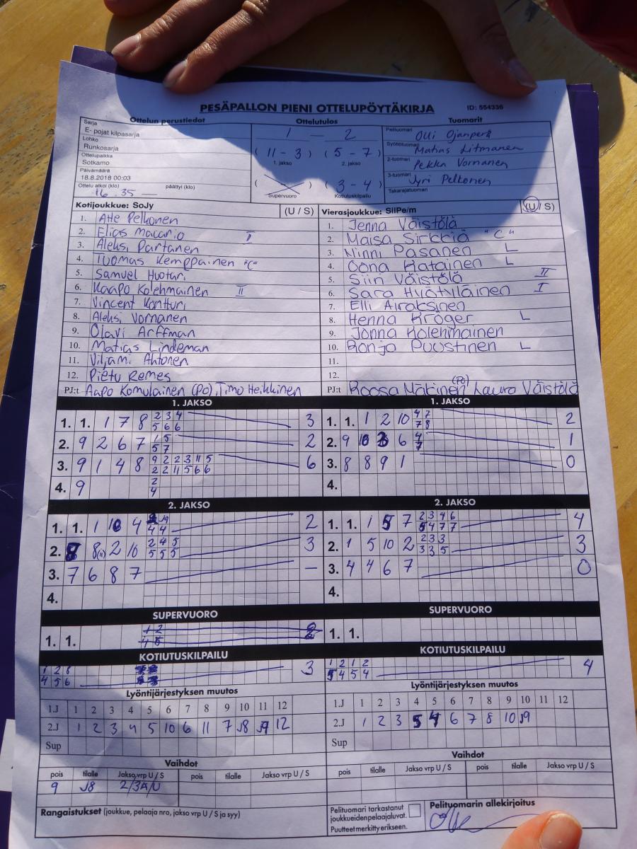 | 29.7.2018 00:03 | E- tytöt | Runkosarja | JoMa/m | SiiPe/k | 12-11 | | näytä |