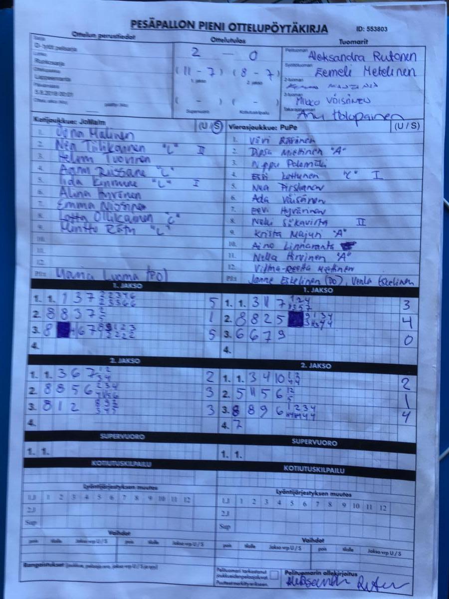 | 22.8.2018 18:00 | Kuntopesis - Etelä-Karjala | Runkosarja | Harrastepesis Imatra | RaU | 9-1 | | |