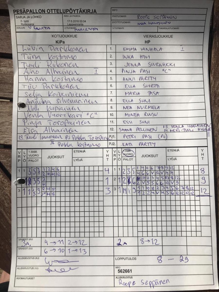 | 17.6.2018 00:04 | F- tytöt | Runkosarja | KiPa | HP | 8-29 | | näytä |