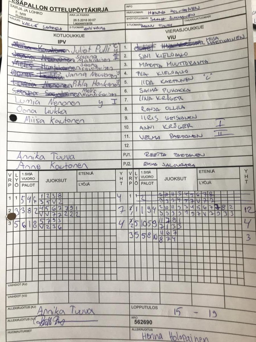 | 26.5.2018 00:07 | F- tytöt | Runkosarja | IPV | ViU | 15-19 | | näytä |