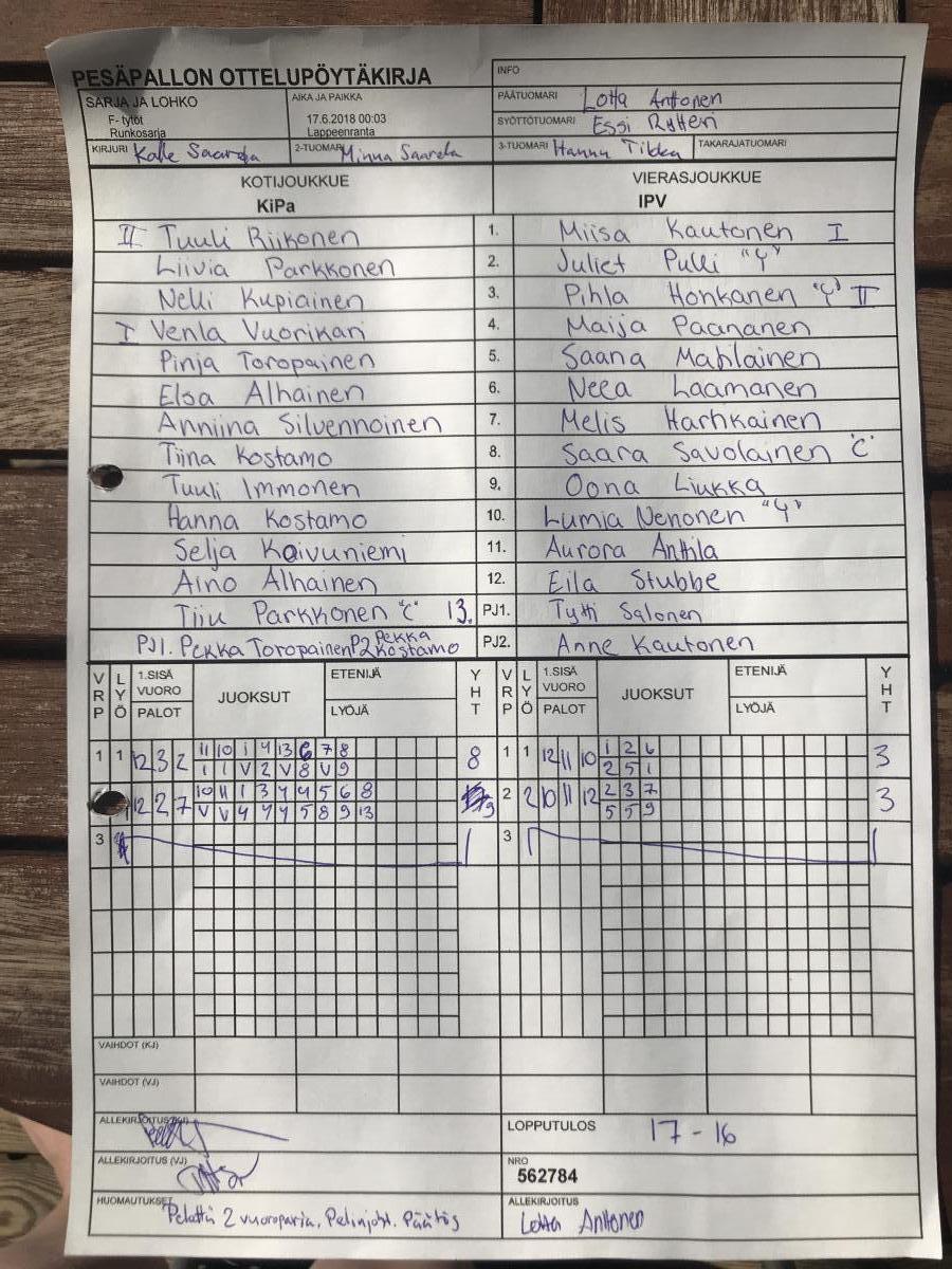 | 17.6.2018 00:02 | F- tytöt | Runkosarja | IPV | Ysit | 8-16 | | näytä |