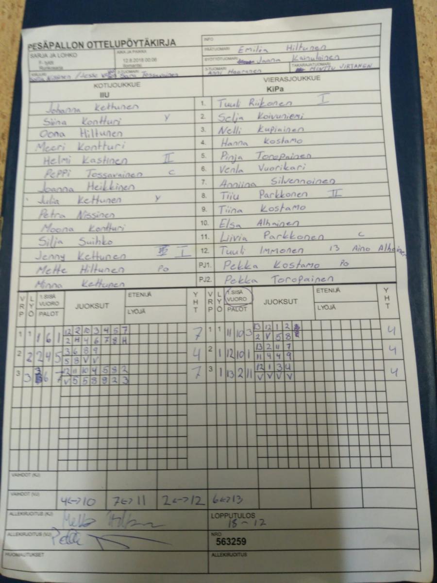 | 12.8.2018 00:06 | F- tytöt | Runkosarja | IlU | KiPa | 18-12 | | näytä |