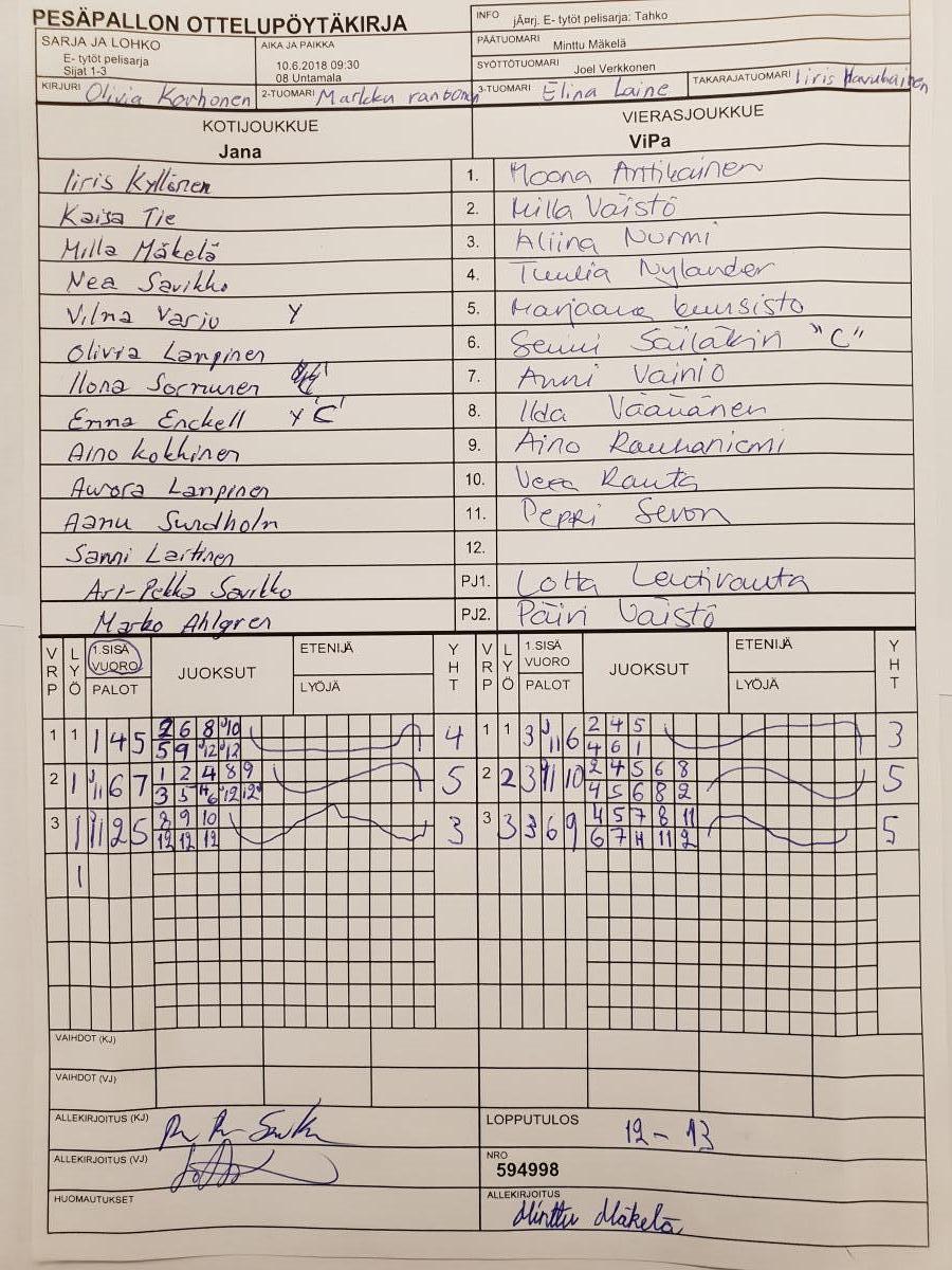 | 8.6.2018 13:30 | E- tytöt pelisarja | Alkusarja | ViPa | LaJy/Myve | 10-9 | Jana | näytä |