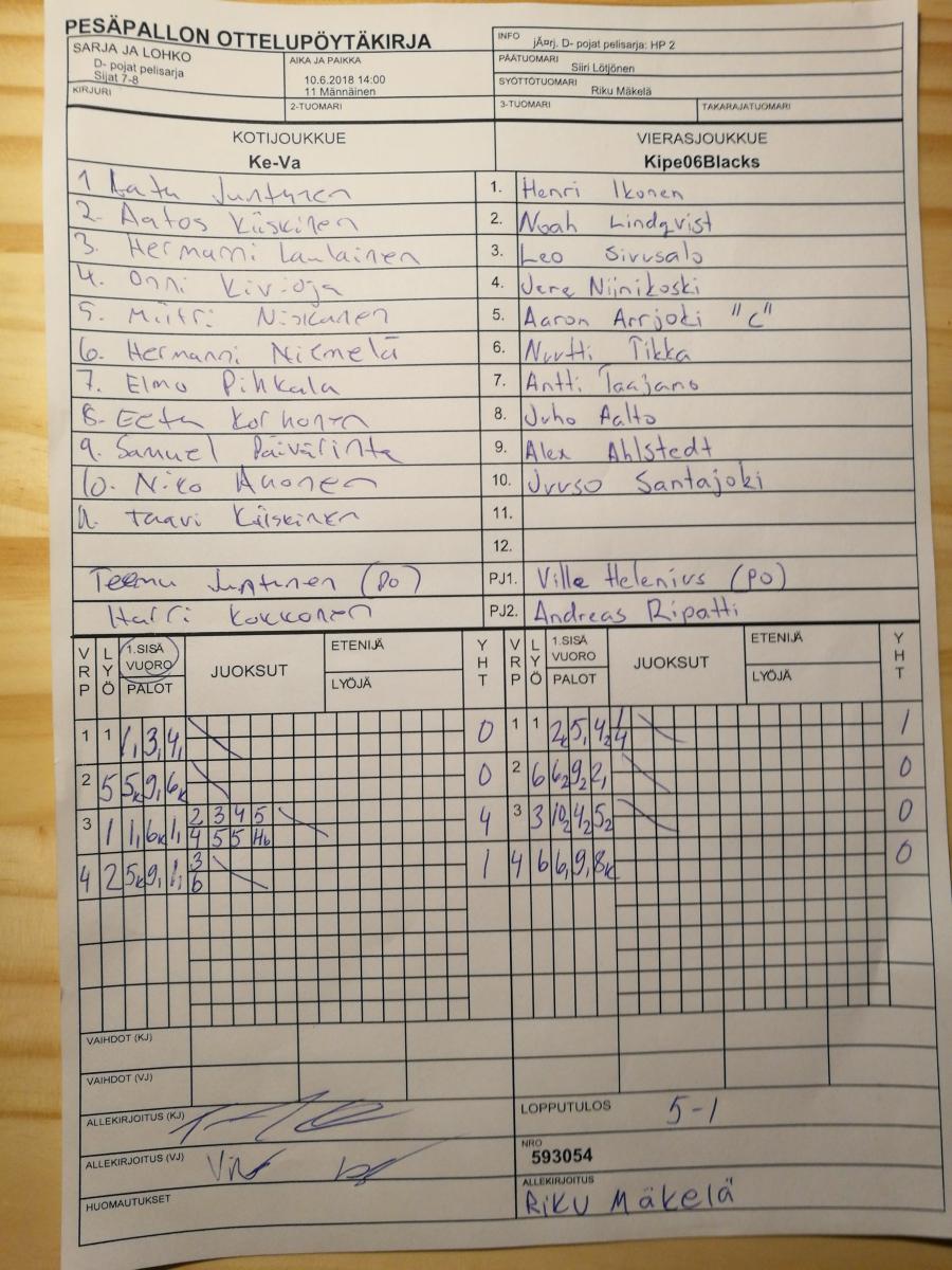 | 10.6.2018 14:00 | D- pojat pelisarja | Sijat 7-8 | Ke-Va | Kipe06Blacks | 5-1 | HP 2 | näytä |
