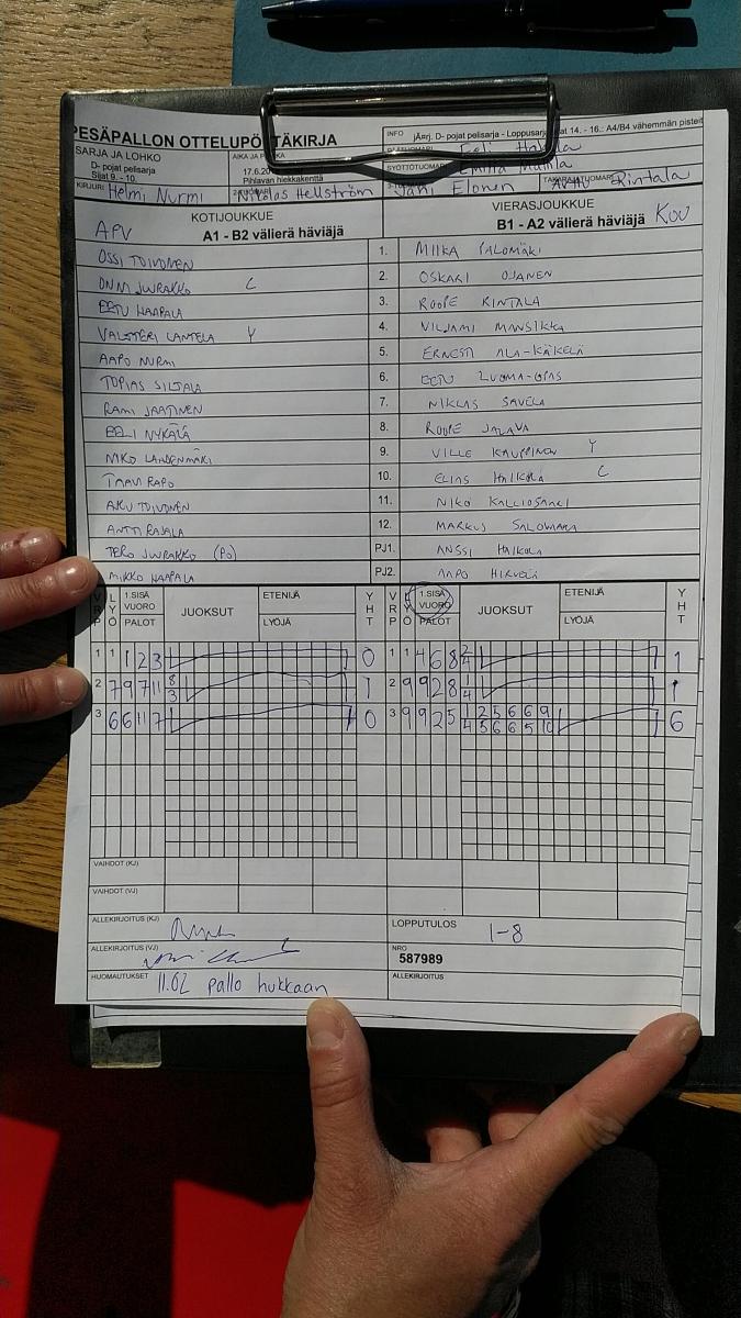 | 15.6.2018 19:30 | D- pojat pelisarja | Alkusarja lohko B | APV | kou | 7-6 | Euve D-pojat | näytä |