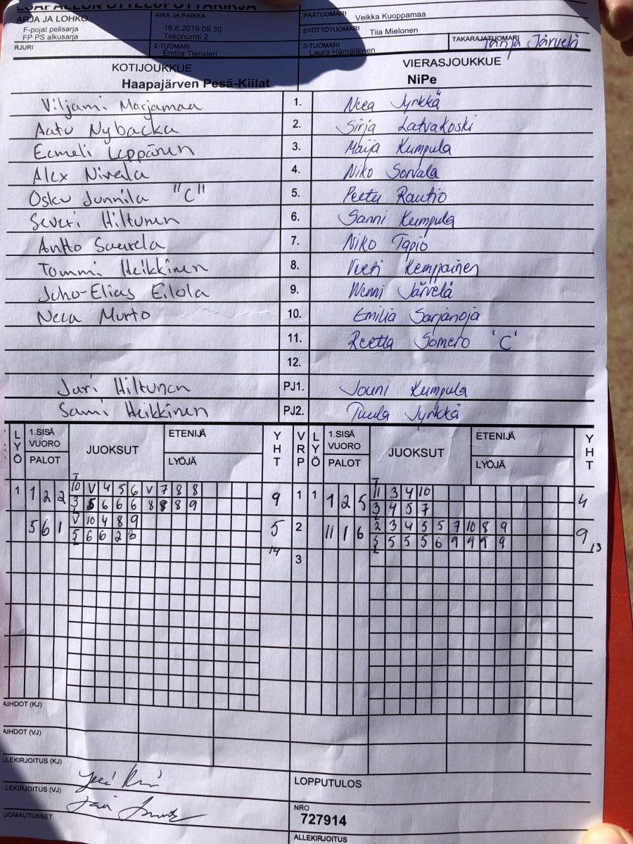 | 14.6.2019 15:00 | F-pojat pelisarja | FP PS alkusarja | Lippo jr Fp Sininen | NiPe | 4-17 | | näytä |