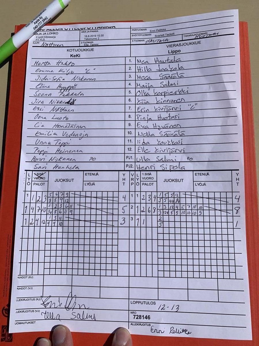 | 16.6.2019 10:30 | F-tytöt kilpasarja | FT YLS | KeKi | Lippo | 12-13 | | näytä |