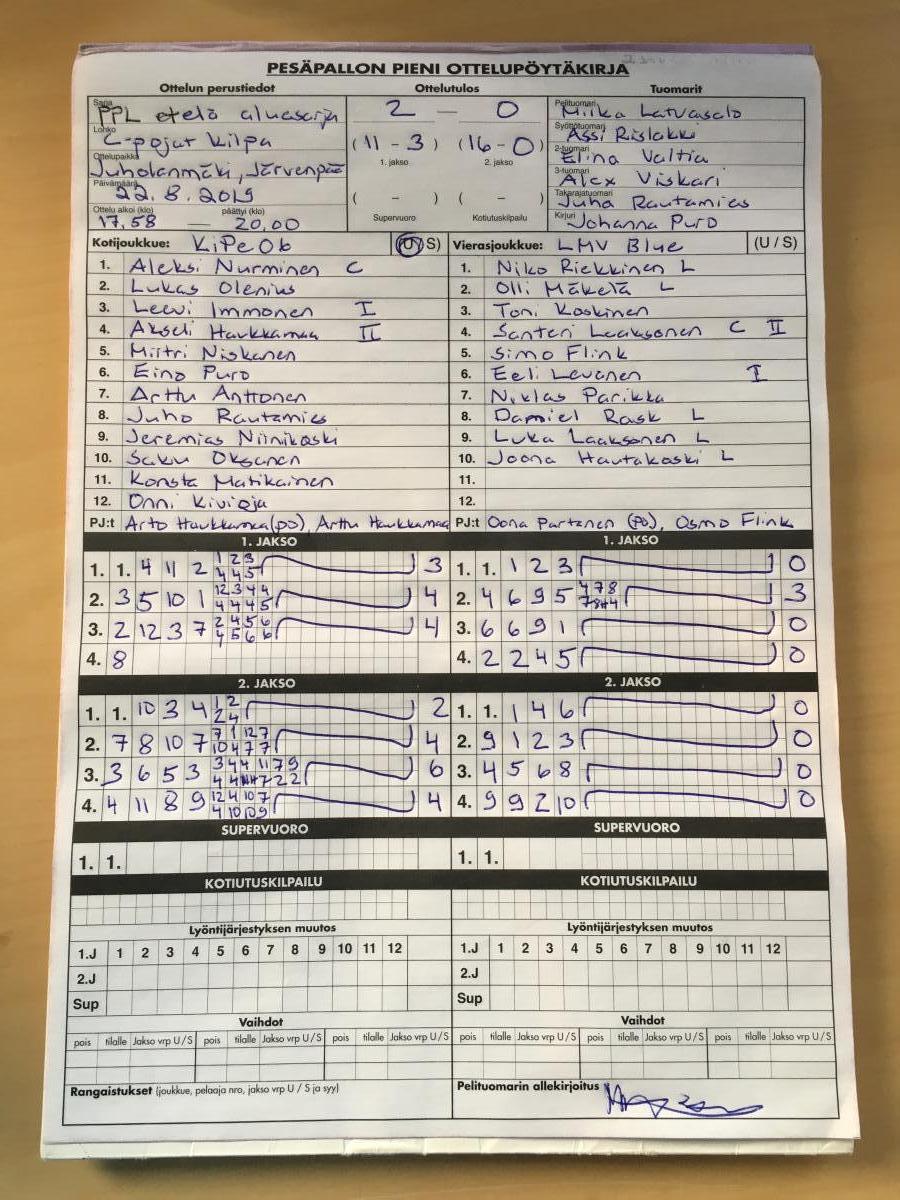 | 24.8.2019 12:00 | C- pojat kilpasarja | Runkosarja | Kipe-06 | Tahko C | 1-2 (9-5, 10-12, 0-4) | | näytä |