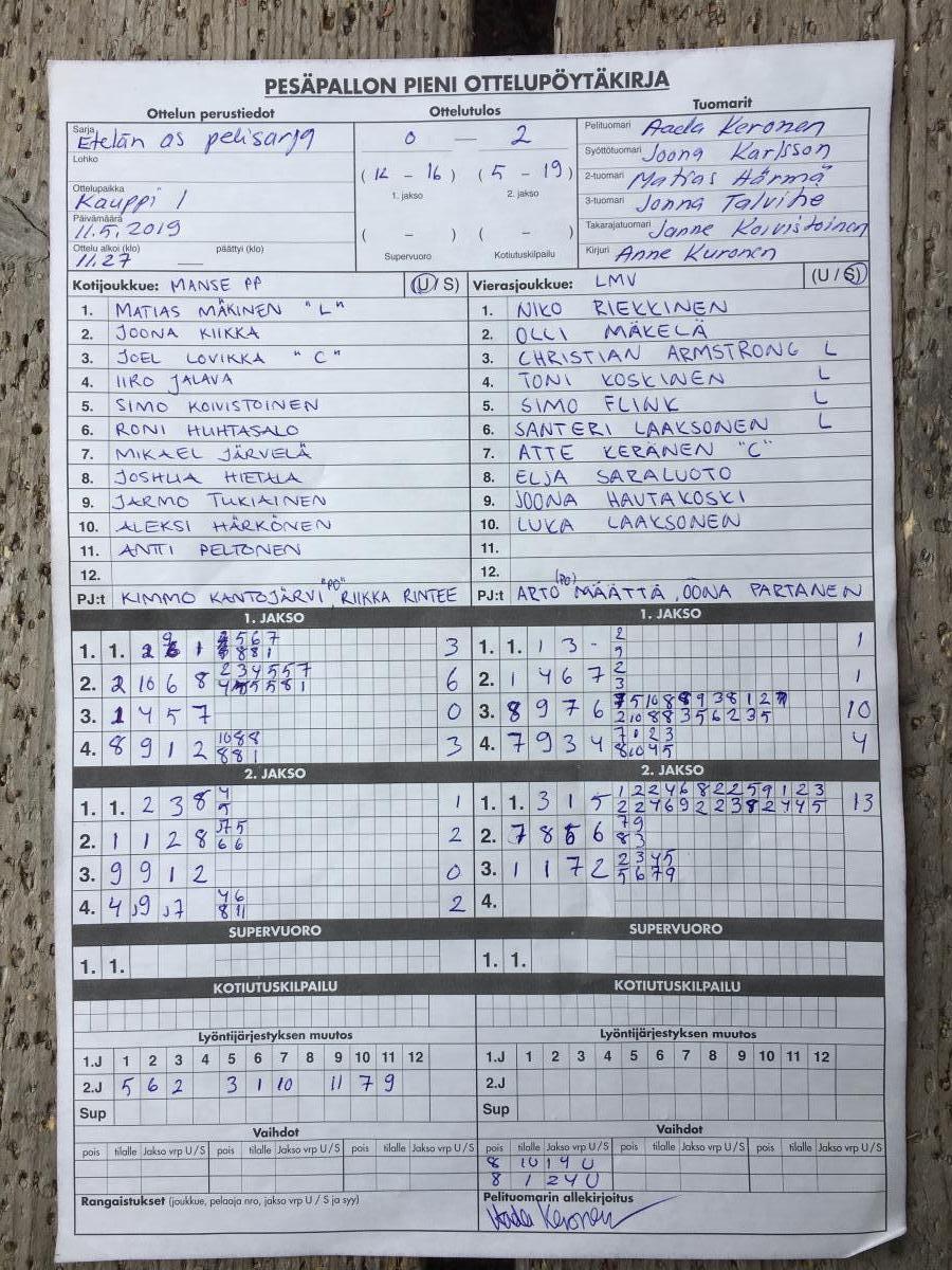 | 12.7.2019 18:00 | C- pojat kilpasarja | Runkosarja | Manse PP CP | LMV Blue | 2-0 (25-6, 11-10) | | näytä |