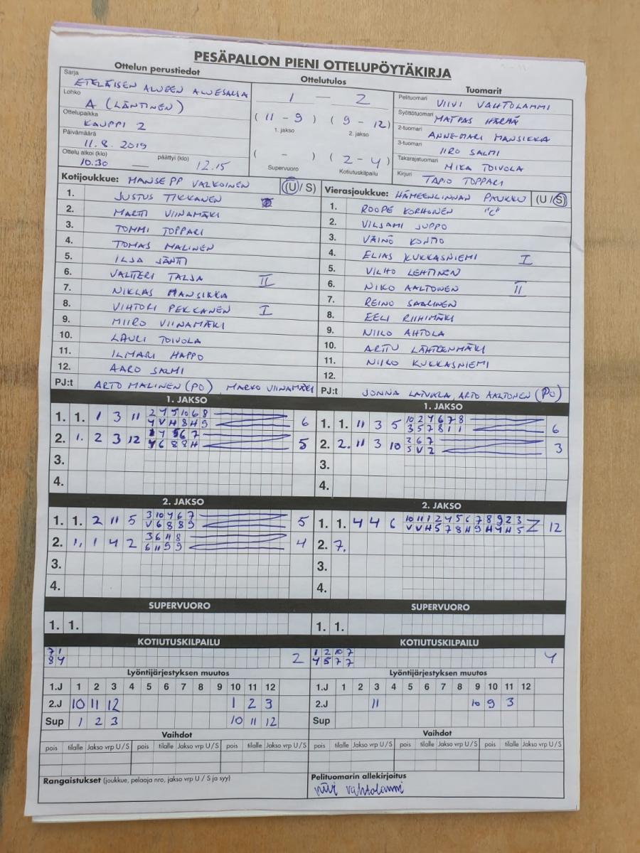 | 11.8.2019 10:30 | F- pojat | Lohko A (läntinen) | Manse PP valkoinen | Hml Paukku F-p | 1-2 (11-9, 9-12, 0-0, 2-4) | | näytä |