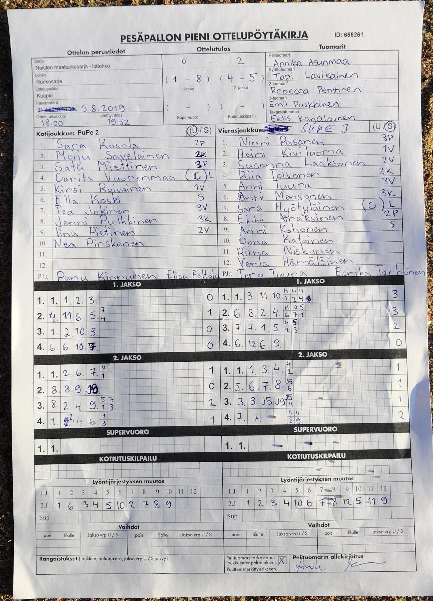 | 5.8.2019 18:00 | Naisten maakuntasarja - itälohko | Runkosarja | PuPe 2 | SiiPe 3 | 0-2 (1-8, 4-5) | | näytä |
