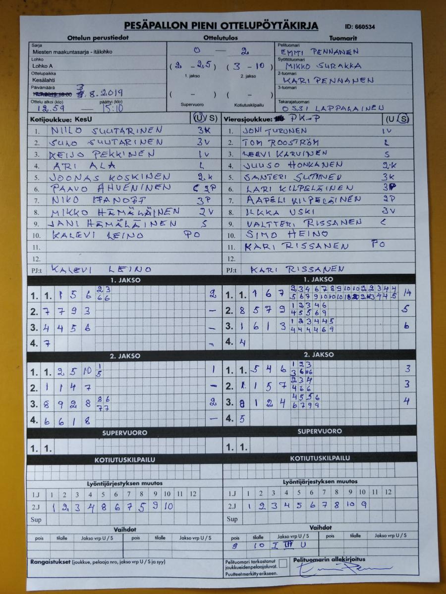 | 3.8.2019 13:00 | Miesten maakuntasarja - itälohko | Yhdistelmälohko | KesU | PK-P | 2-25 | näytä |