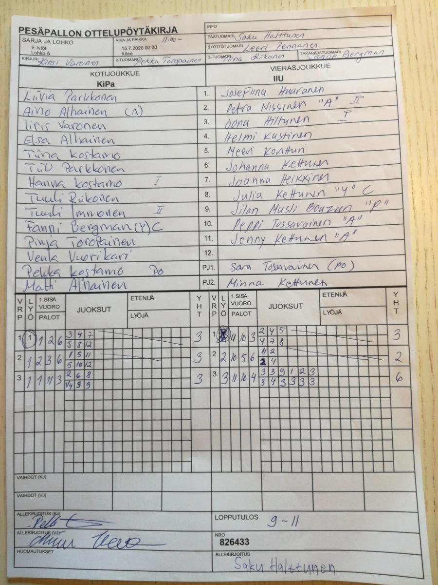 | 15.7.2020 00:02 | E-tytöt | Lohko A | KiPa | IPV | 26-8 | | näytä |