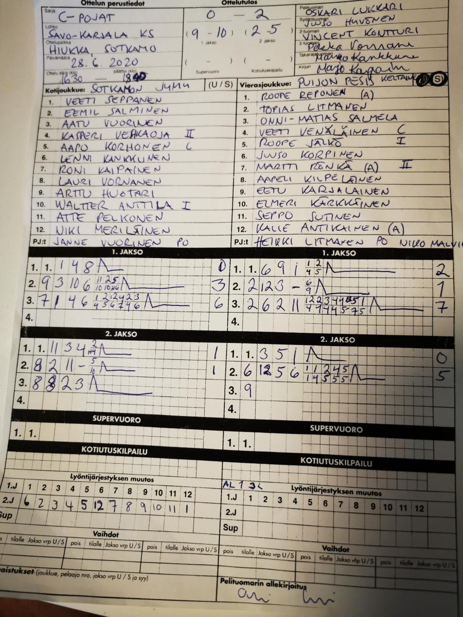 | 28.6.2020 00:02 | C-pojat | Runkosarja | SoJy | PuPe keltainen | 0-2 (9-10, 2-5) | | näytä |