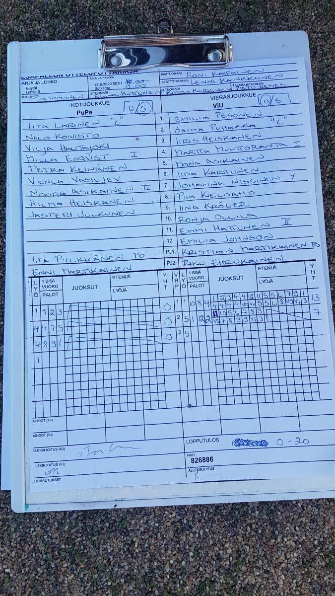 | 27.6.2020 00:01 | E-tytöt | Lohko B | PuPe | ViU | 0-20 | | näytä |