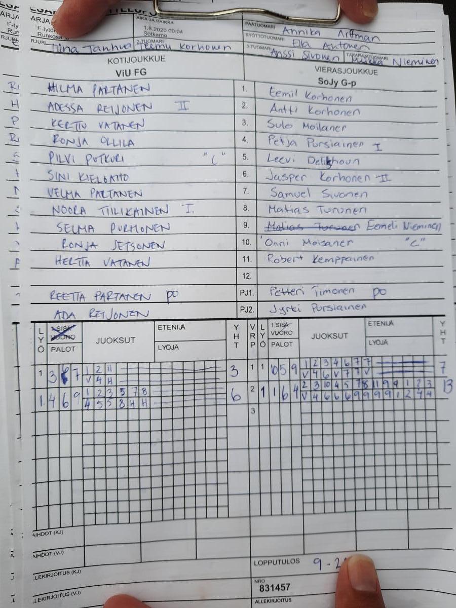 | 1.8.2020 00:02 | F-tytöt ja G-ikäiset | Runkosarja | ViU | SiiPe G | 8-15 | | näytä |