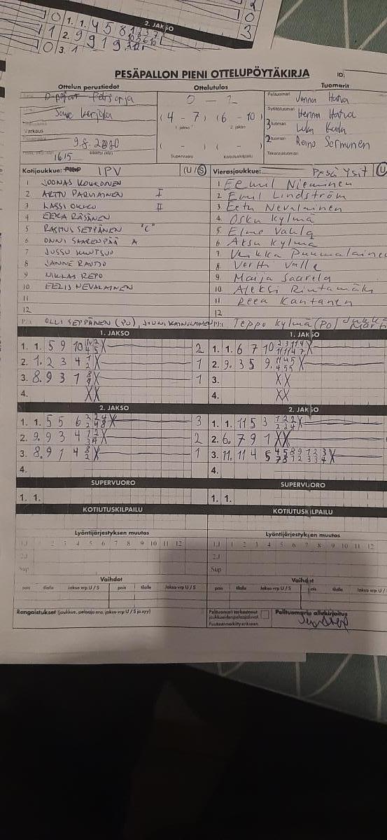 | 22.7.2020 18:30 | JunnuSuperi - Etelä-Savo | Turnauspäivät | Mikkelin Pallonlyöjät / Pesiskoululaiset | PKP junnusuper | 11-11 | | |