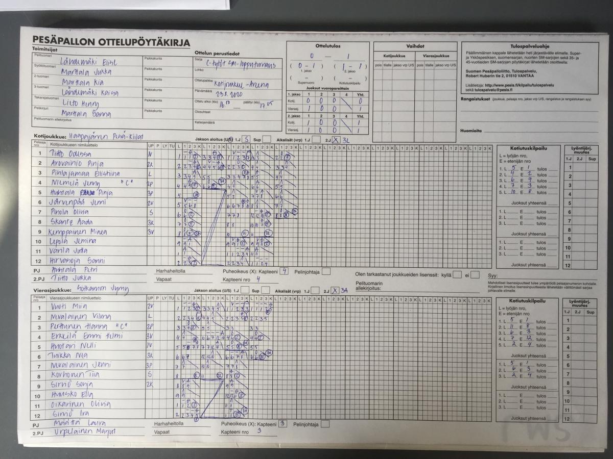 | 23.8.2020 16:00 | C-tytöt lopputurnaus | Loppuottelu | Haapajärven Pesä-Kiilat | Sotkamon Jymy | 0-1 (0-1, 1-1) | näytä |