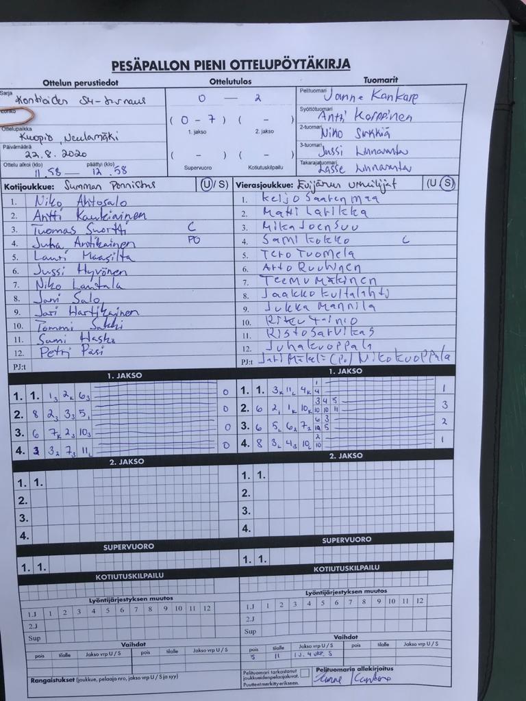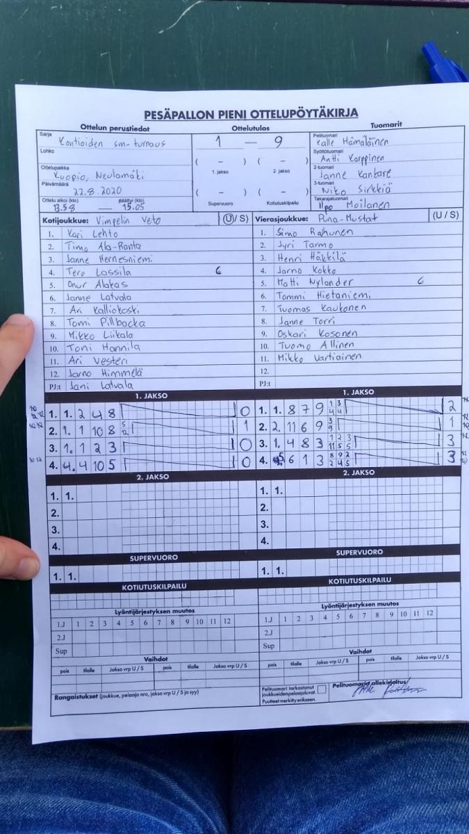 | 22.8.2020 14:00 | Kontiot | Lohko A | Vimpelin Veto | Puna-Mustat, Helsinki | 1-9 | näytä | |