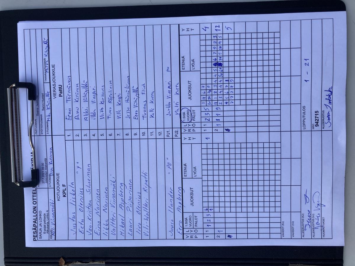 | 27.7.2021 09:30 | E-pojat pelisarja | Alkusarja, Lohko A | KPL F | PattU | 1-21 | | näytä |