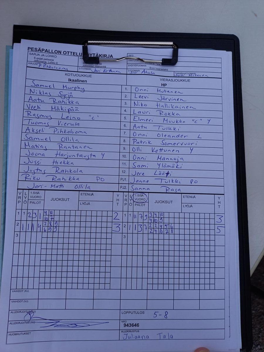 | 30.7.2021 09:30 | E-pojat pelisarja | Jatkosarja, Lohko E | Ikaalinen | HP | 5-8 | | näytä |