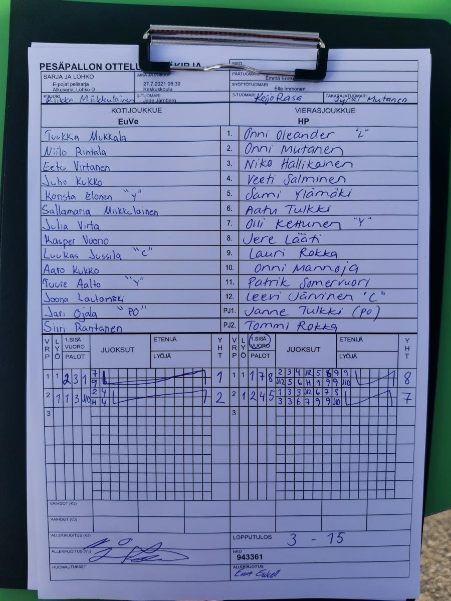 | 27.7.2021 08:30 | E-pojat pelisarja | Alkusarja, Lohko D | EuVe | HP | 3-15 | | näytä |
