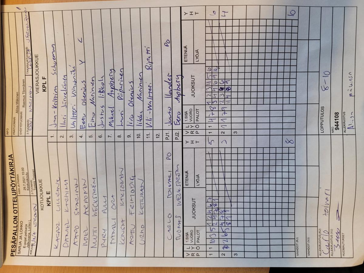| 29.7.2021 15:00 | E-pojat pelisarja | Jatkosarja, Lohko L | KPL E | KPL F | 8-10 | | näytä |