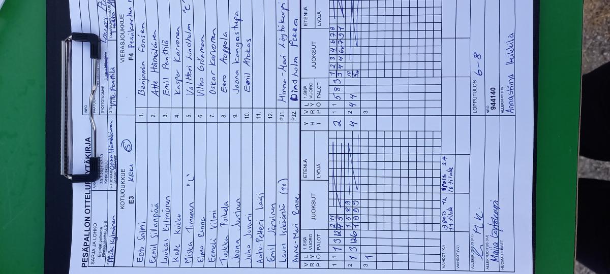| 30.7.2021 09:30 | E-pojat pelisarja | Jatkosarja, Lohko G | Pesäkarhut Punaiset | MyVe | 3-9 | | näytä |