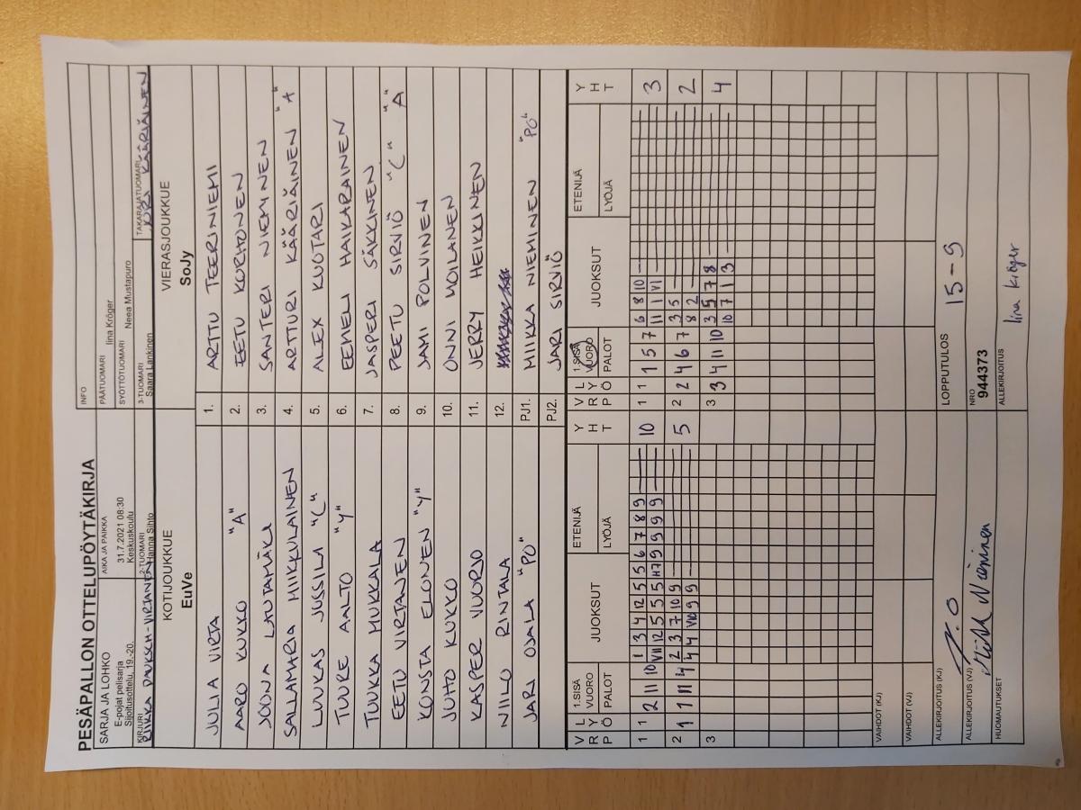 | 27.7.2021 09:30 | E-pojat pelisarja | Alkusarja, Lohko D | MyVe | Simo | 3-24 | | näytä |