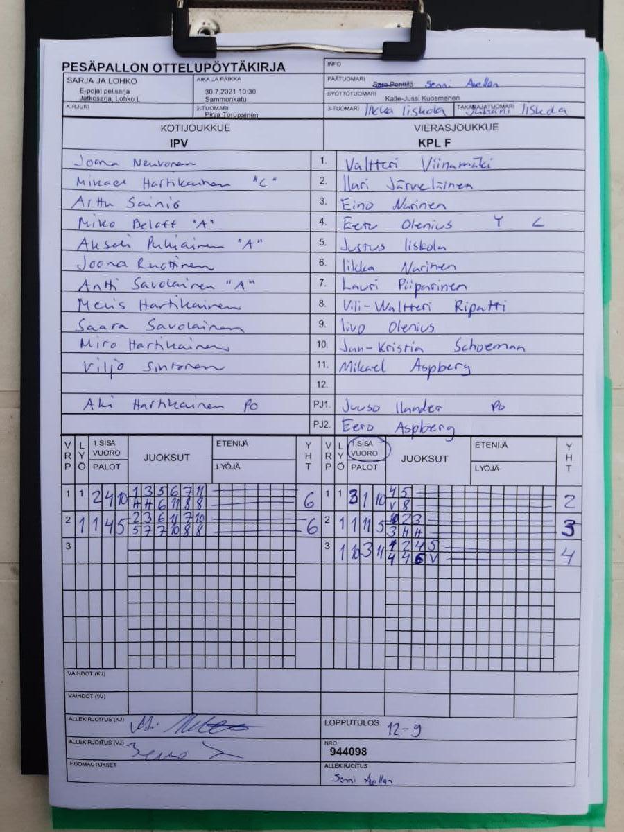 | 30.7.2021 10:30 | E-pojat pelisarja | Jatkosarja, Lohko L | IPV | KPL F | 12-9 | | näytä |