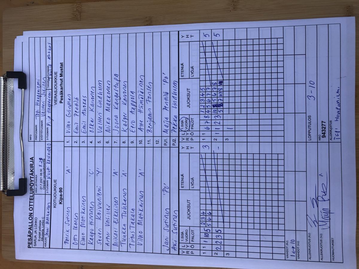 | 27.7.2021 08:30 | E-pojat pelisarja | Alkusarja, Lohko C | Kipa-90 | Pesäkarhut Mustat | 3-10 | | näytä |