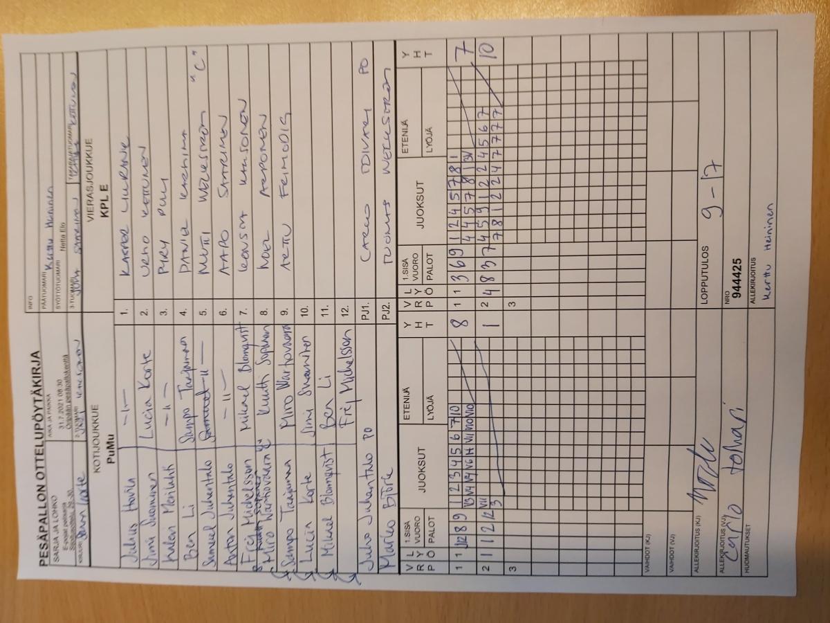 | 31.7.2021 08:30 | E-pojat pelisarja | Sijoitusottelu, 29.-30. | PuMu | KPL E | 9-17 | | näytä |