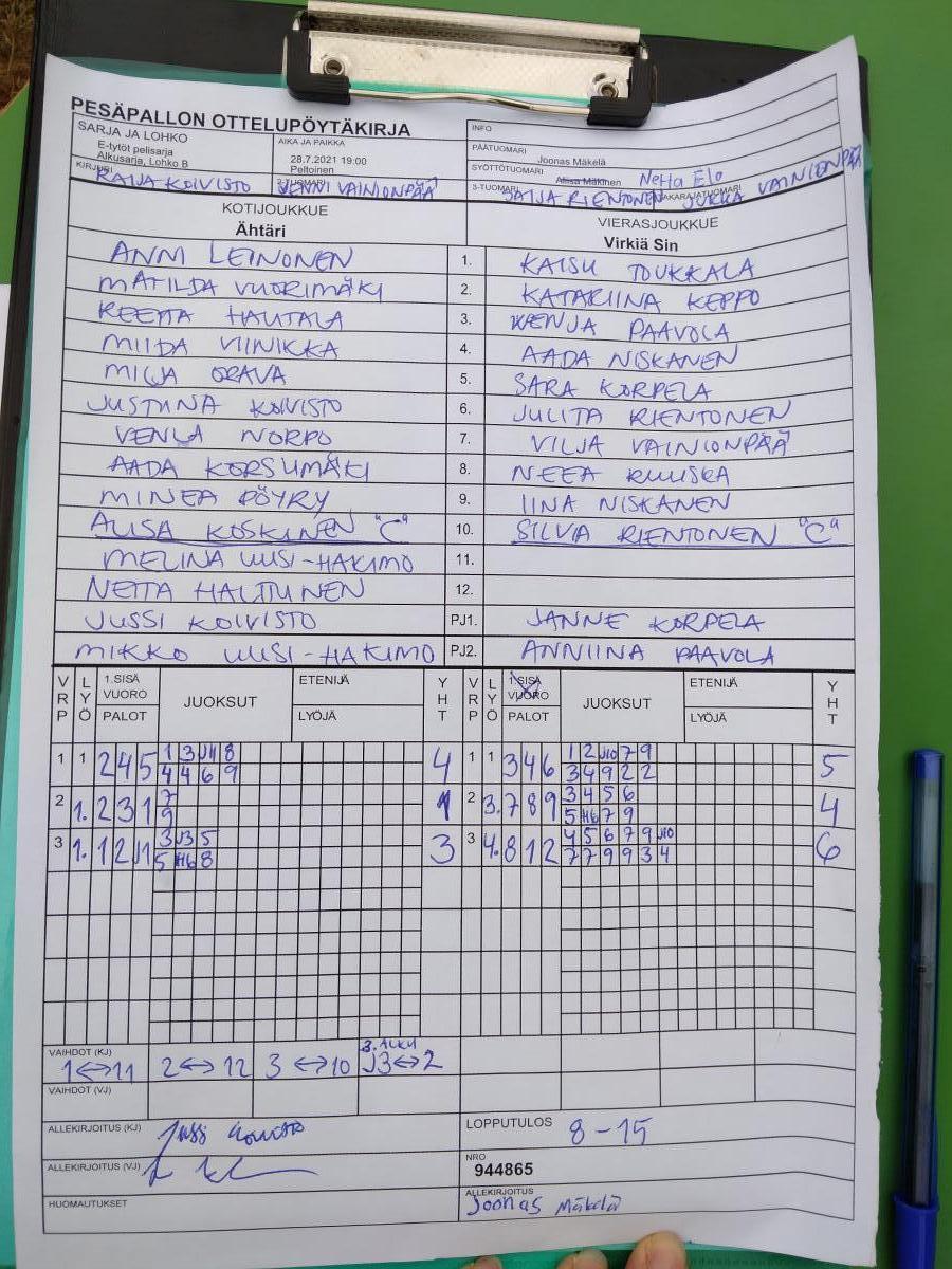 | 28.7.2021 19:00 | E-tytöt pelisarja | Alkusarja, Lohko B | Ähtäri | Virkiä Sin | 8-15 | | näytä |