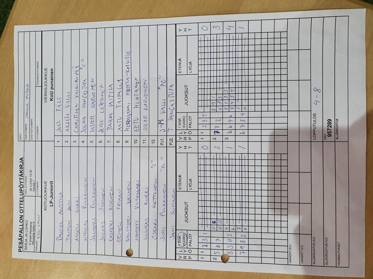 | 26.3.2022 09:30 | E-pojat kilpasarja | Alkusarja lohko A | KPL musta | LP-Juniorit | 6-4 | | näytä |