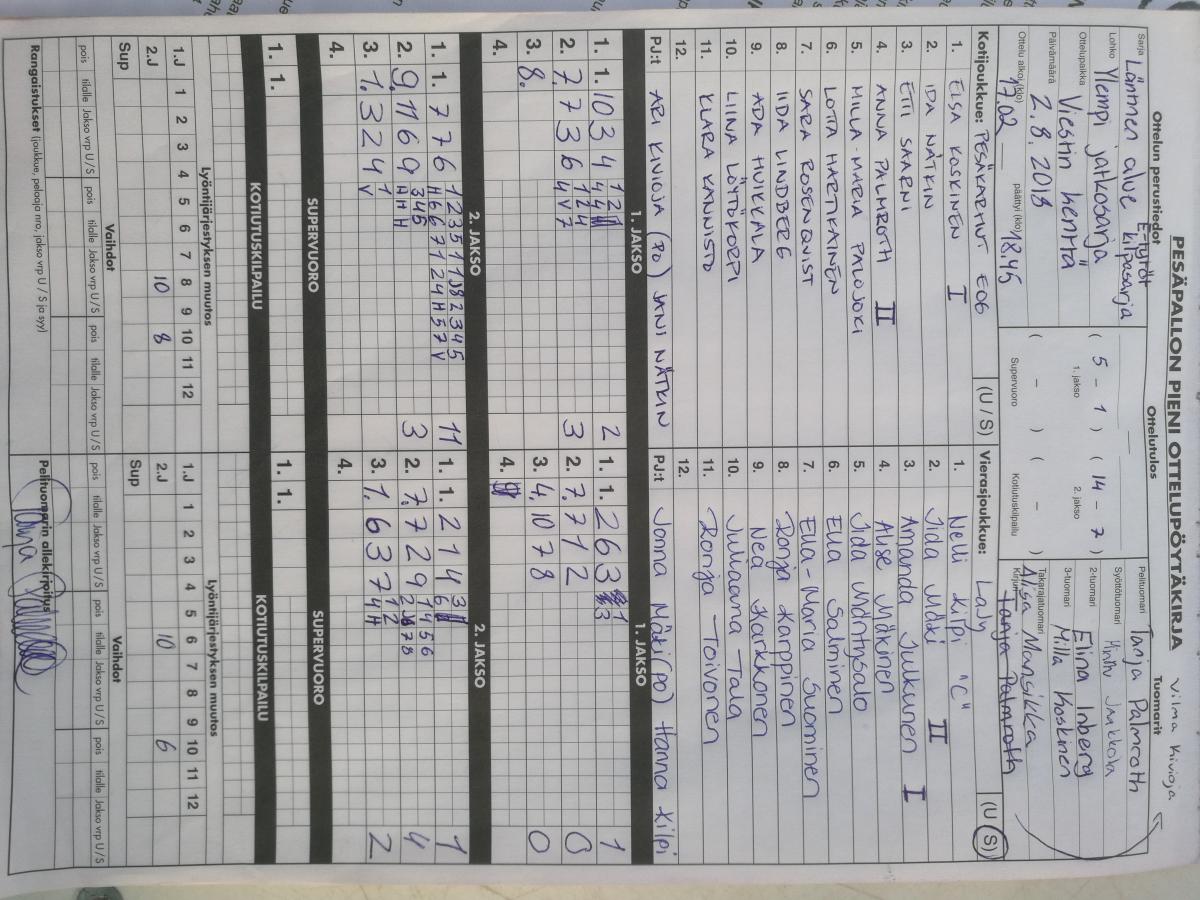 | 635695 | 2.8.2018 18:00 | Pesäkarhut E06 | LaJy | 2-0 (5-1, 14-7) | näytä |