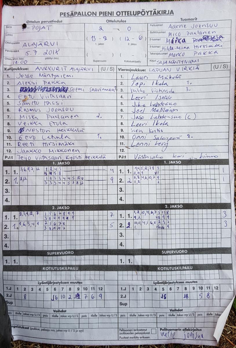 | 552273 | 27.6.2018 18:00 | SMJ-P08 | APV | 2-0 (10-4, 13-4) | näytä |