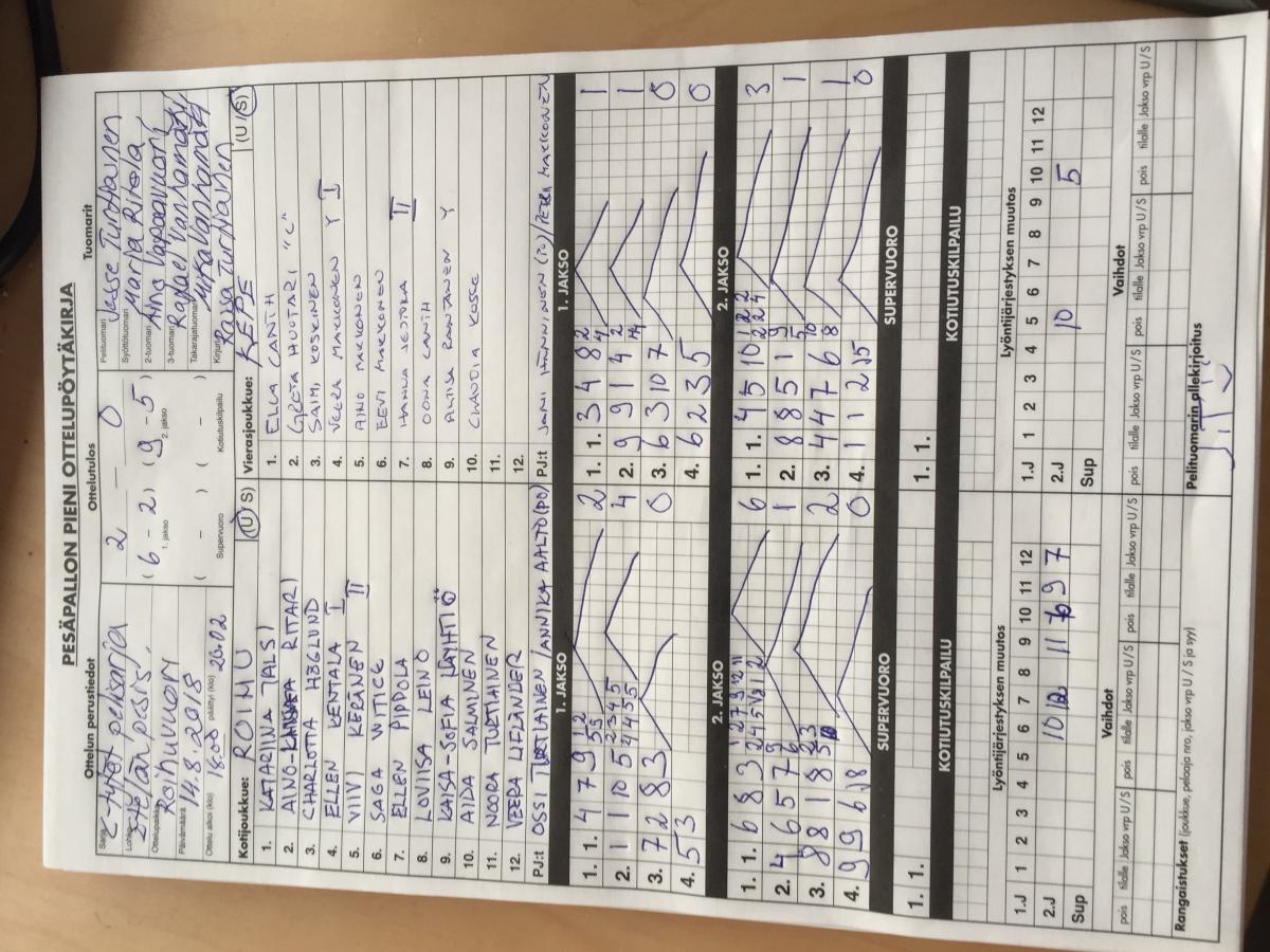 | 533580 | 9.8.2018 | Roihu | Puhti C-tytöt | 1-2 (8-2, 7-10, 0-0, 2-3) | näytä |