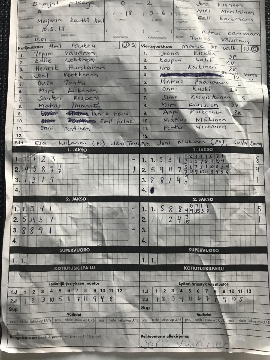 | 539856 | 12.7.2018 | Manse PP Dp punaiset | UP-V D04 | 0-2 (0-7, 0-5) | näytä |