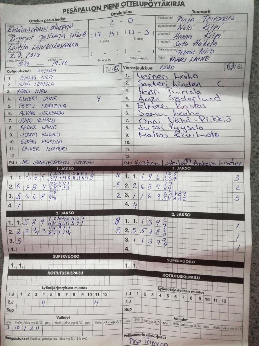 | 539717 | 18.6.2018 | RP- 67 | LaJy D-pojat | 0-2 (1-11, 2-3) | |