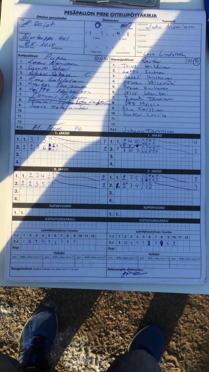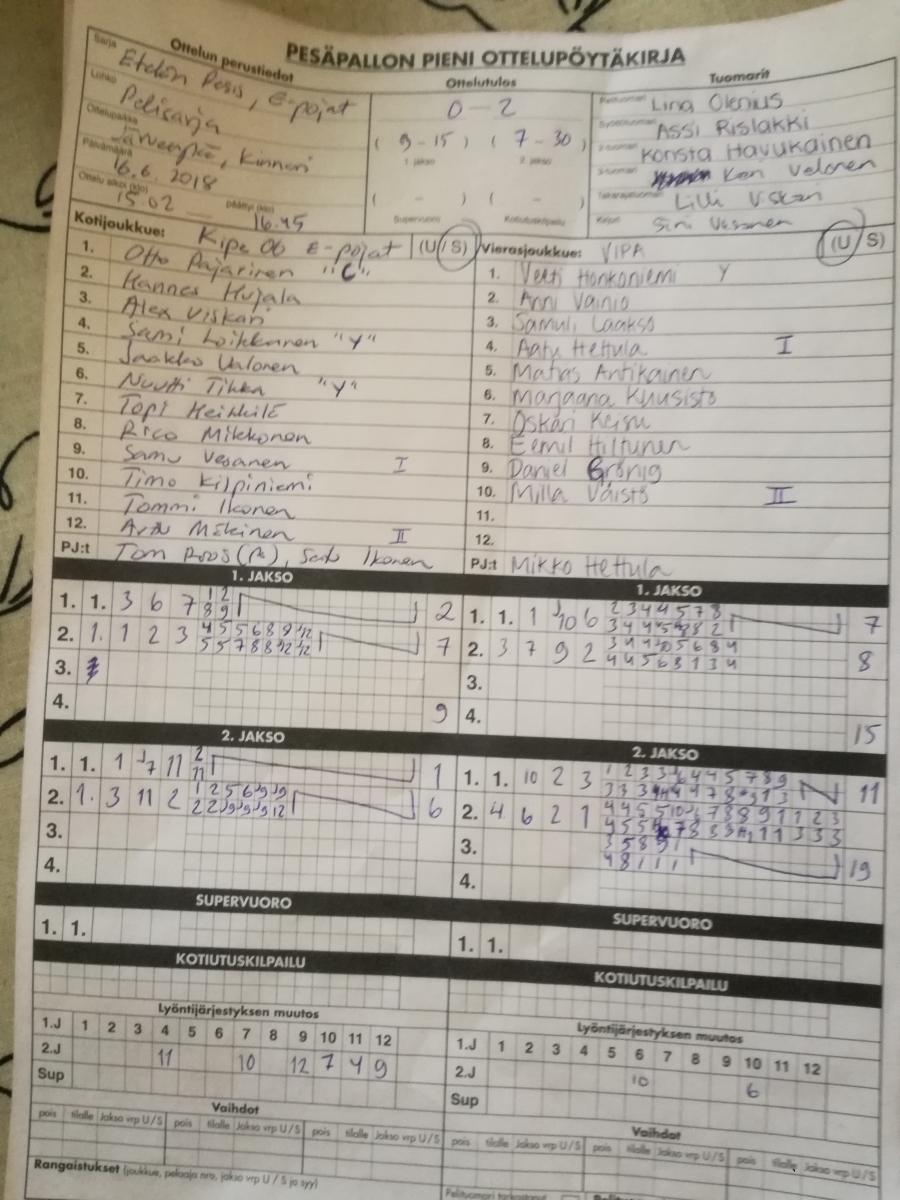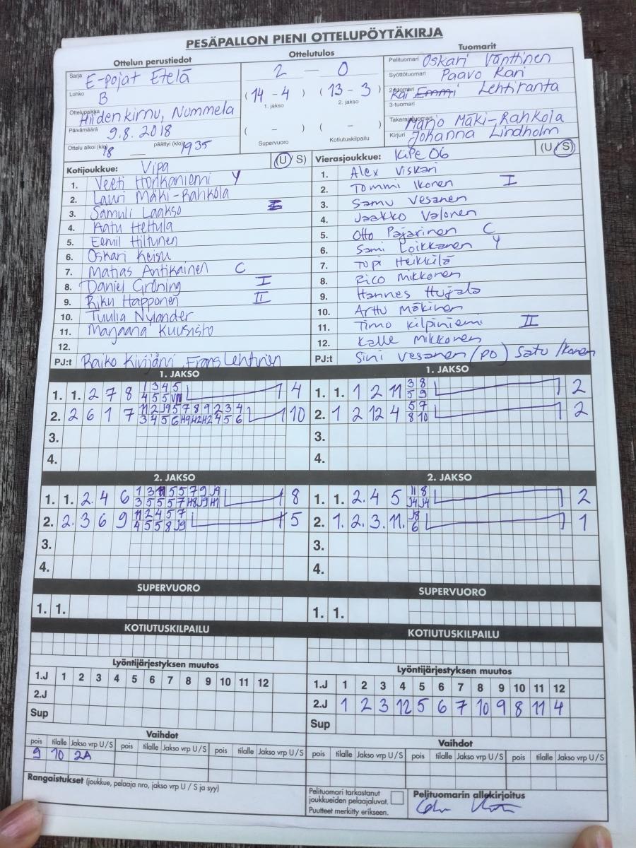 | 538475 | 18.8.2018 | HML Paukku E2 | PuMu E-pojat | 2-0 (17-7, 10-6) | |