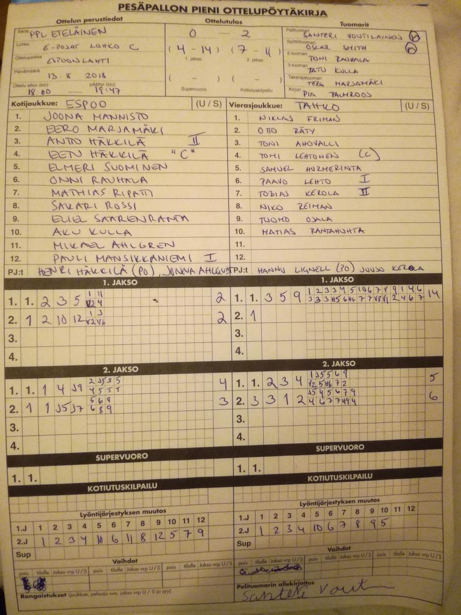| 538598 | 7.8.2018 | SuPo E-pojat | Tahko Brown | 0-2 (6-17, 3-16) | näytä |