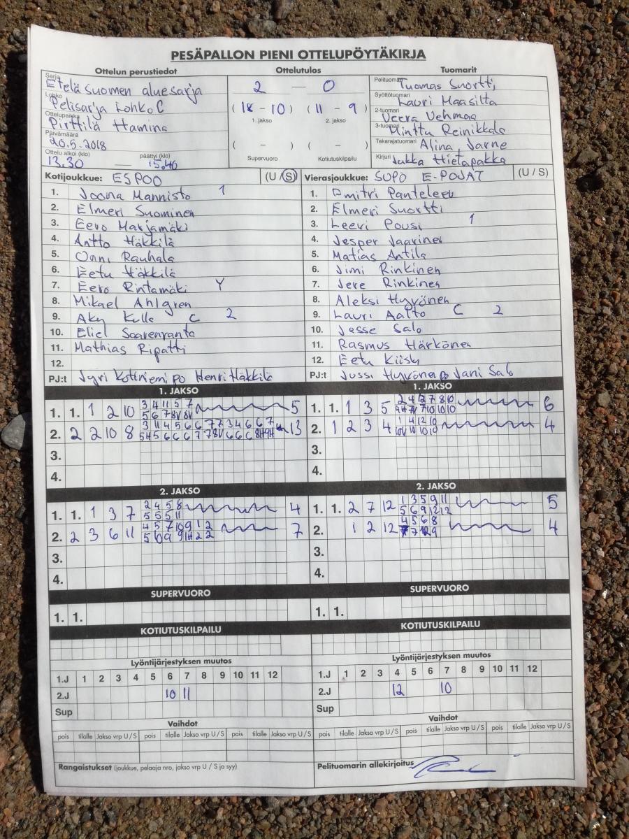 | 538679 | 20.5.2018 | SuPo E-pojat | Espoo | 0-2 (7-11, 3-18) | näytä |
