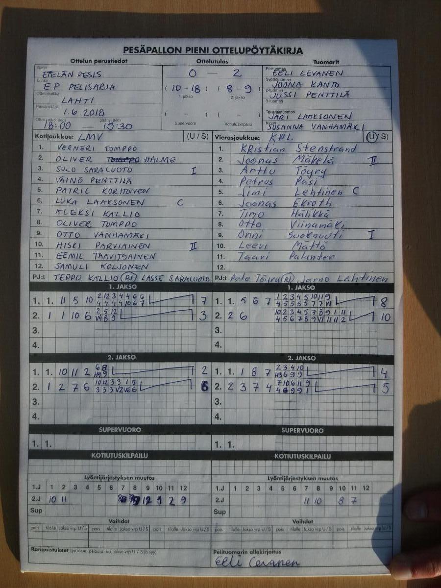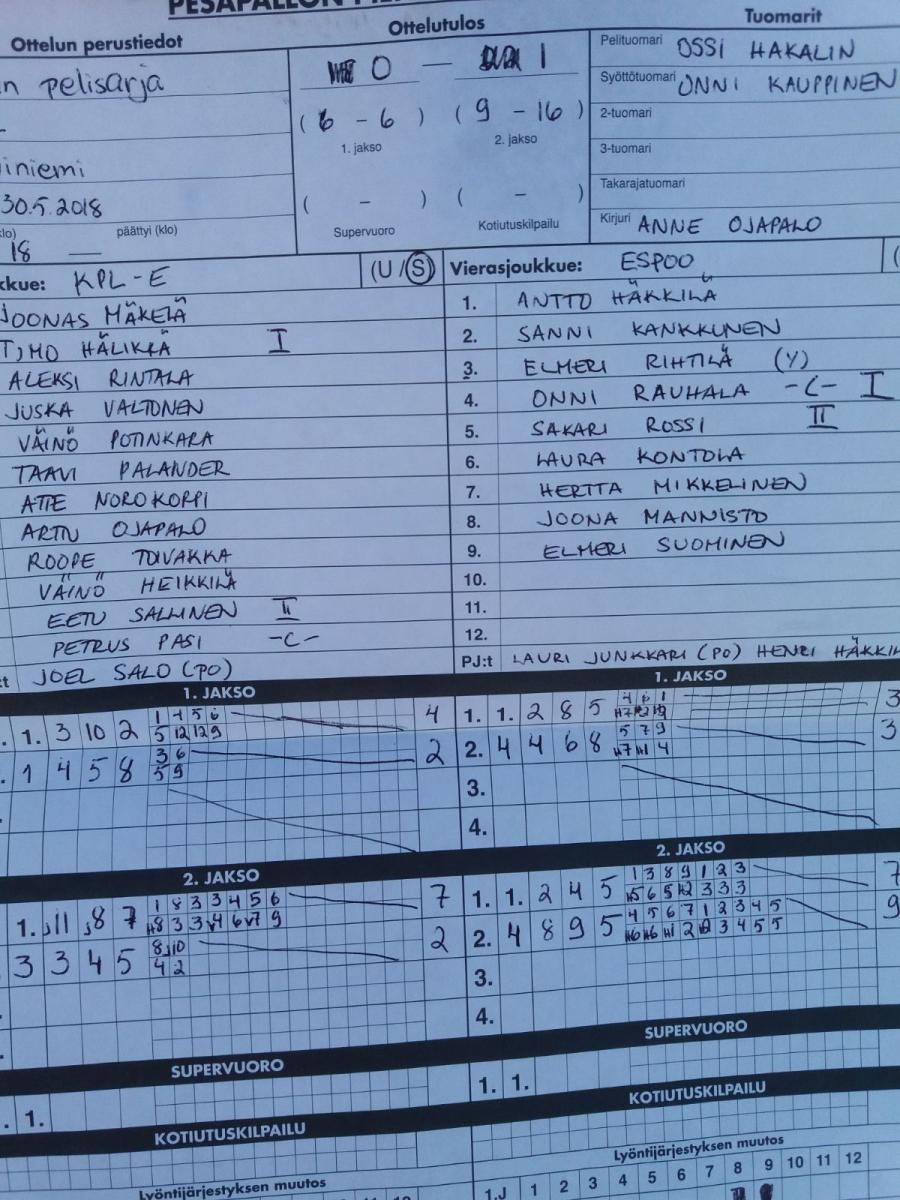 | 538873 | 30.5.2018 | KPL EP Black | Espoo | 0-1 (6-6, 9-16) | näytä |