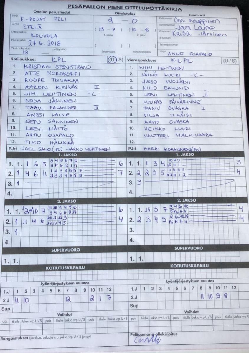 | 538640 | 27.7.2018 | LMV | SuPo E-pojat | 2-0 (17-4, 25-4) | näytä |